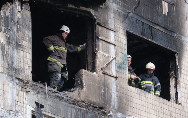Мер також повідомляв, що у пошкодженому будинку в Соломʼянському районі частково обвалилися перекриття. Станом на 12:00 там досі розбирають завали.
